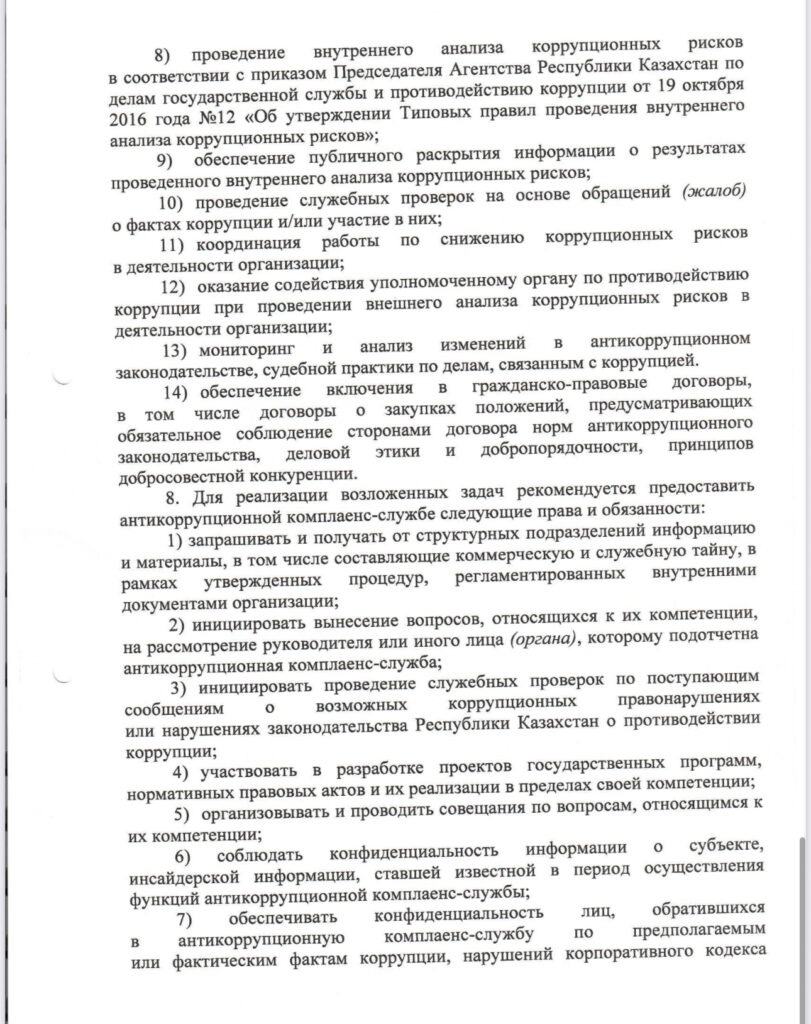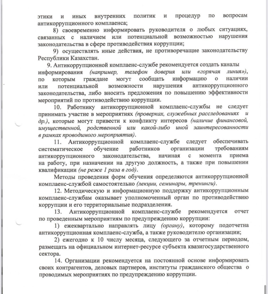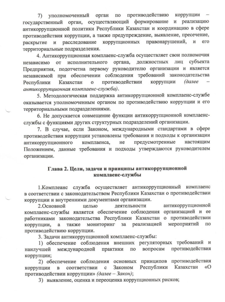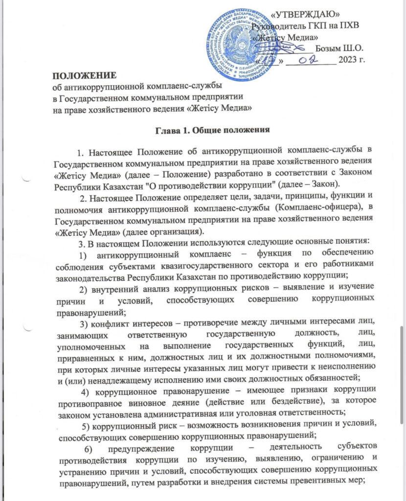 ПОЛОЖЕНИЕ об антикоррупционной комплаенс-службы в Государственном коммунальном предприятии на праве хозяйственного ведения «Жетісу Медиа»