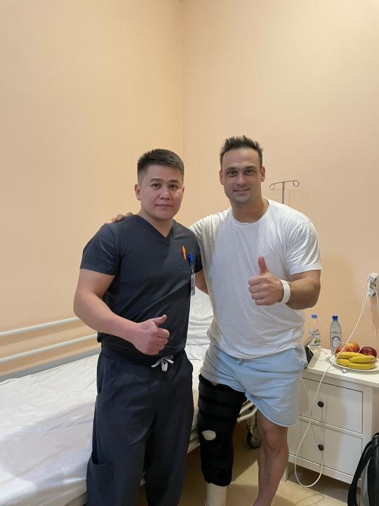 Операция известному спортсмену была проведена на следующий день после госпитализации. Нуржан Асанов, врач травматолог-ортопед отделения артроскопии и спортивной травмы, успешно провел операцию.
