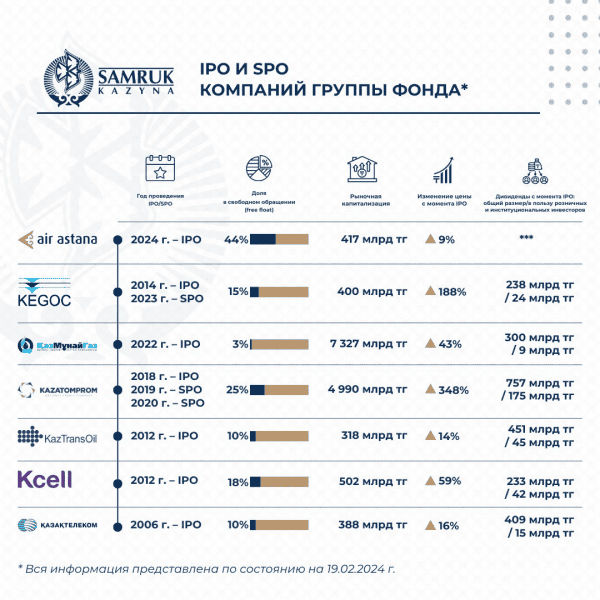 Председатель правления фонда Нурлан Жакупов отчитался по итогам вывода крупнейших нацкомпаний Казахстана на фондовый рынок. Он отметил, что сделки вызвали большой интерес к инвестированию у населения.