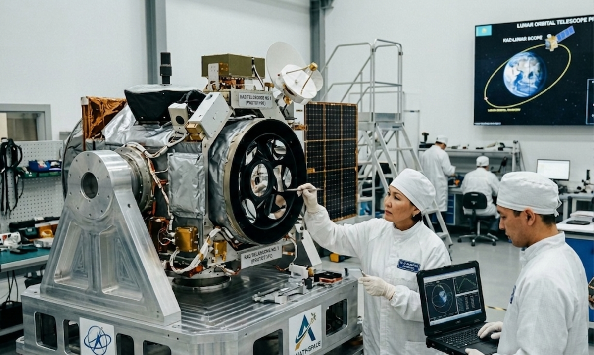 В век второй лунной гонки, когда передовые страны мира соревнуются в деле освоения Луны, казахстанские ученые и инженеры в области аэрокосмической промышленности поставили перед собой стратегическую задачу – создать продвинутый телескоп, который в будущем будет работать на орбите Луны. Инициатива реализуется казахстанской стороной в рамках программно-целевого финансирования науки при поддержке Министерства науки и высшего образования. На борту автоматической станции будет расположено несколько малоапертурных инфракрасных камер, которые являются наиболее информативными для задач проекта.