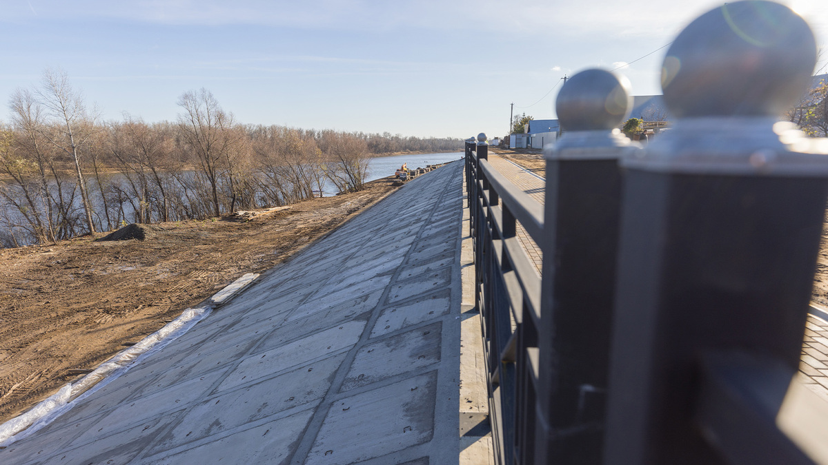 Реконструкция набережной велась с мая по сентябрь текущего года. Согласно проекту, в целях защиты от подтоплений набережная реки была поднята на более высокий уровень. Вся территория полностью благоустроена, установлены декоративные ограждения.