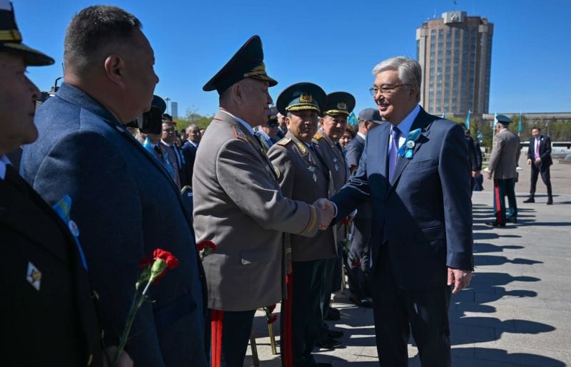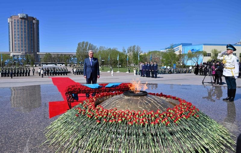 «Глава государства возложил цветы к монументу «Отан Ана» и почтил минутой молчания память воинов-казахстанцев, погибших в годы Великой Отечественной войны.Затем президентский оркестр исполнил Государственный Гимн, рота почетного караула прошла торжественным маршем перед участниками мероприятия», — говорится в сообщении.