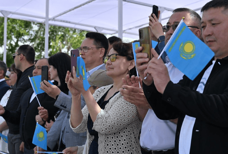– Только что состоялась церемония поднятия Государственного флага по случаю сегодняшней даты. Пусть гордо реет наш небесно-голубой стяг! Почитать его – священная обязанность каждого гражданина. Наш флаг, парящий в синеве неба, наполняет каждого из нас чувством уважения к своей Отчизне. Благодаря спортивным победам он не раз поднимался на многих международных турнирах. Недавно первая казахская альпинистка вновь подняла наше знамя над самой высокой точкой мира – горой Эверест. Приближаются летние Олимпийские игры. Уверен, в честь побед наших спортсменов небесно-голубое полотнище не раз взметнется ввысь над аренами Парижа, – сказал Президент.