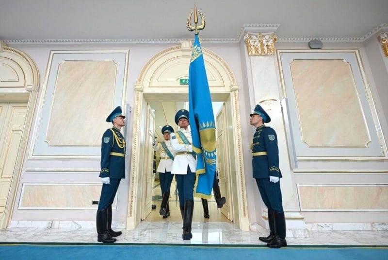 Обратился Президент страны к членам сборной команды Казахстана, участвующим в ХХХІІІ летних Олимпийских играх, вручая Государственный флаг.
