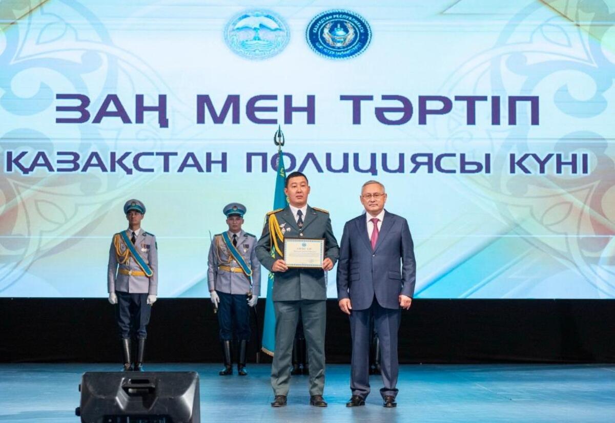 Глава региона вручил благодарственное письмо Премьер-министра РК старшему инспектору спецподразделения СОБР майору полиции Мирасу Даутову. Целая когорта сотрудников была отмечена Почетными грамотами и Благодарственными письмами областного акимата. Также впервые трое лучших полицейских области отмечены специальными статуэтками «Үздік қызметі үшін». В этом году ими стали следователь Талдыкорганской городской полиции старший лейтенант Енлик Базарбаева, а также участковый инспектор Аксуского района капитан Ерик Наваев и оперуполномоченный полиции Коксуского района капитан Габит Муканов. Церемония продолжилась вручением отличившимся сотрудникам правоохранительных органов очередных специальных званий.