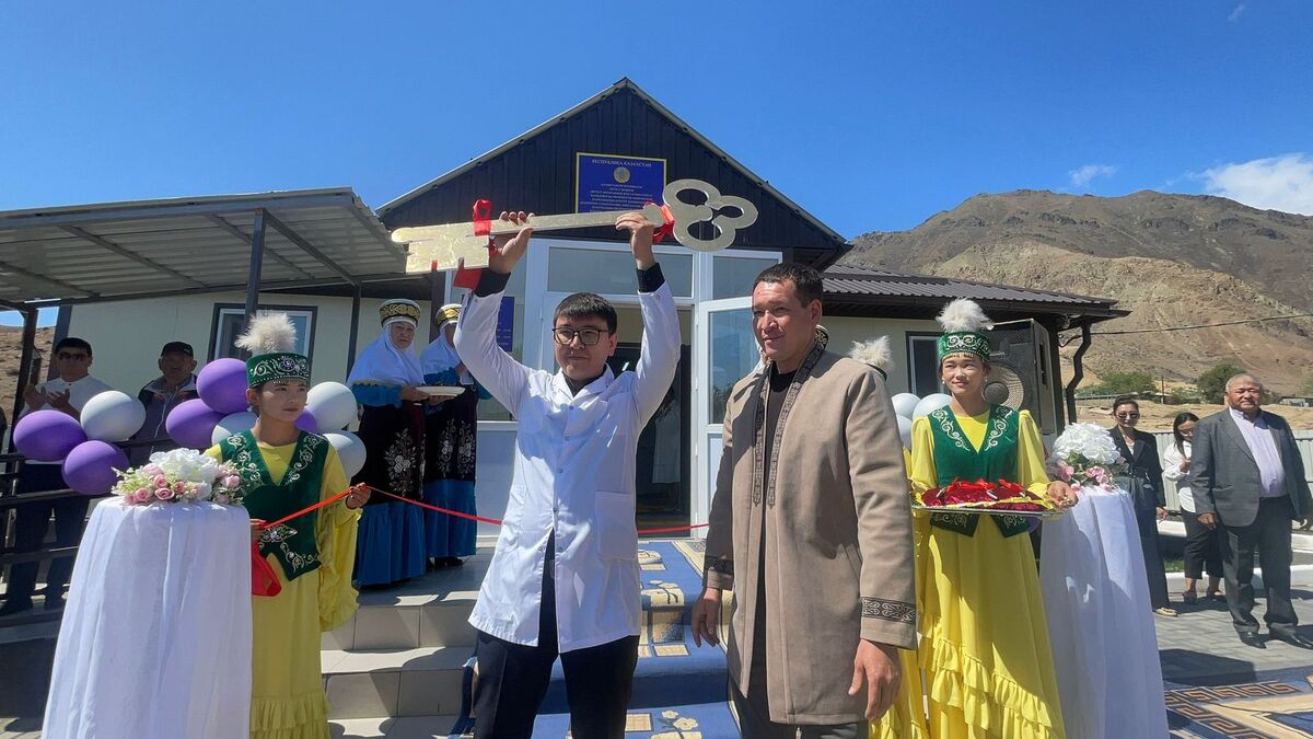 От имени тружеников села свою признательность руководству области и района, строительной компании за поддержку сельской глубинки, развитие местной инфраструктуры выразил уважаемый аксакал Сейтжапар Козыбеков. После его бата представитель подрядной организации Ермек Тлеукенов вручил символические ключи участковому врачу Жансерику Сатыбалды. Затем состоялась церемония разрезания ленты акимом района, аксакалом С.Козыбековым, главным врачом ЦРБ А.Еликбаевым и подрядчиком Е. Тлеукеновым.