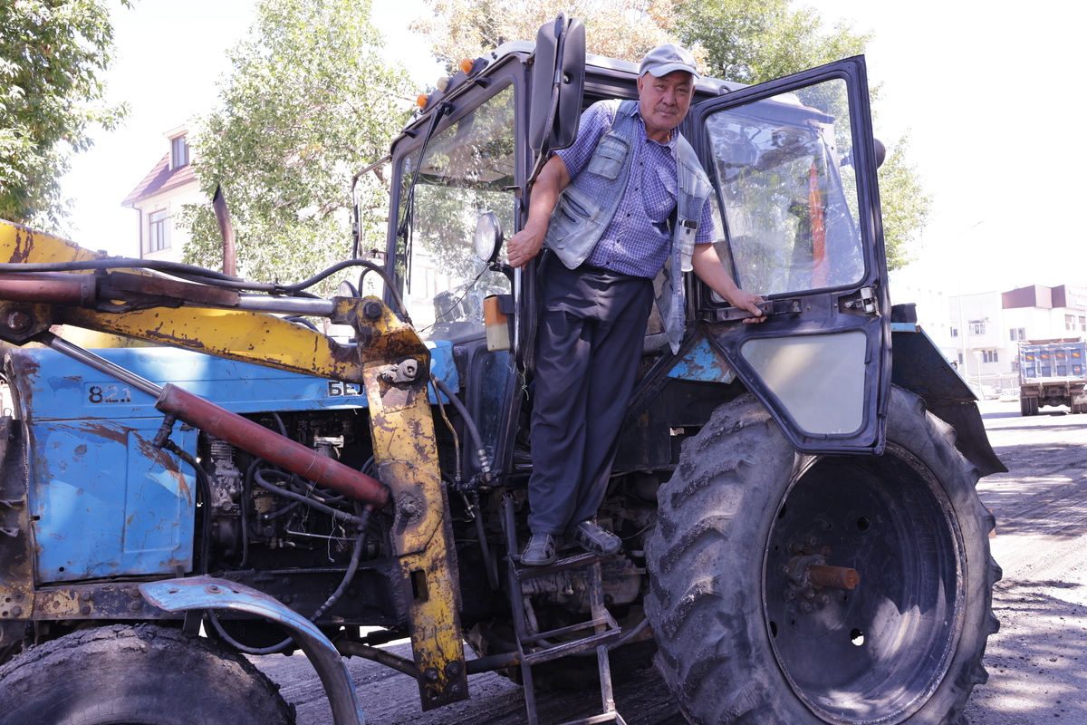 Нурболат Абишев пришел сюда одиннадцать лет назад водителем катка. Сегодня он работает на современной технике, выполняет бетонные работы. Он говорит тихо, но с гордостью: