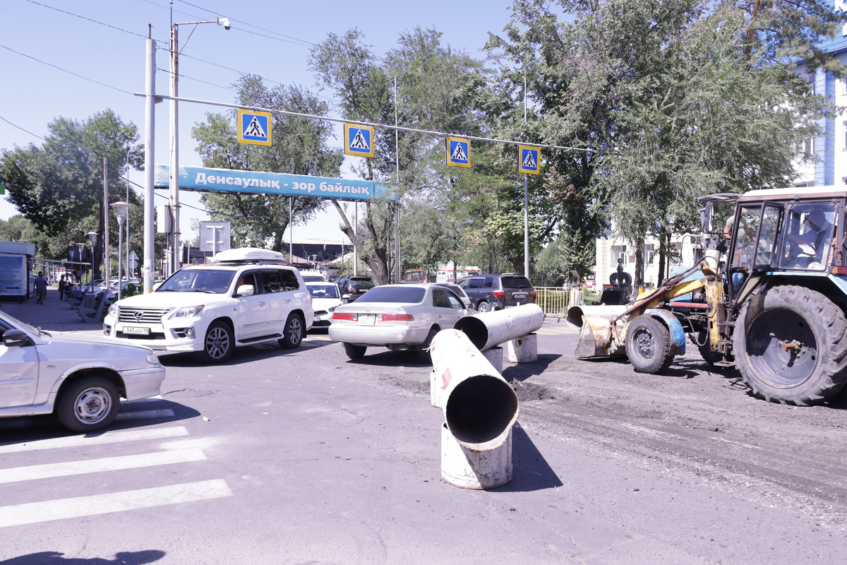 «Сейчас на улице работает тяжелая техника, снимаем покрытие по два квартала в день. Планируем завершить реконструкцию улицы к концу осени. Главное, успеть до холодов», — уточняет Даулет Дарманкулов.