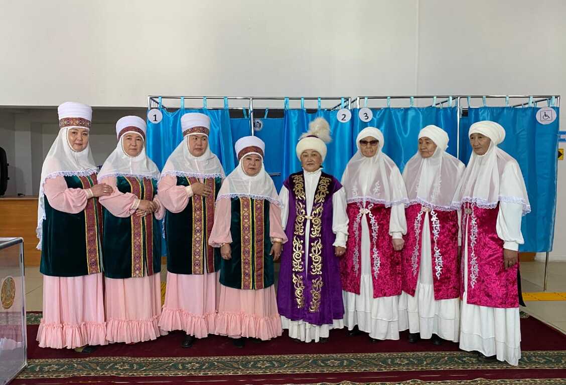 Около 80 женщин из сел Акын Сара, Коныр, Жалгызагаш и Сырымбет пришли на свои участки, чтобы реализовать своё право голоса. В казахских национальных костюмах они подчеркнули уважение к традициям и культурному наследию народа.
