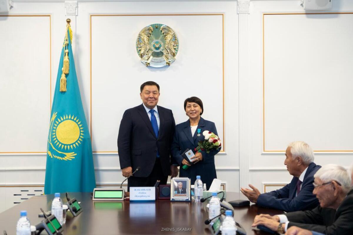Юбилейной награды удостоились ветераны депутатского корпуса Парламента РК, общественные деятели Оралбек Жакиянов, Жомарткали Жексенбинов, Ермек Келемсеит, председатель областного маслихата Гульнар Тойлыбаева и государственные служащие, работающие в местных исполнительных органах Айнур Дауылбаева, Арман Кабаев, Анар Сарымолдаева и Серик Смагулов.