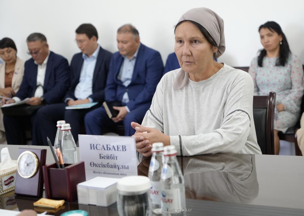 А Ляззат Шалабаева попросила выделить бесплатно рабочих для строительства летней кухни и ванной комнаты в ее доме. В ходе беседы она сообщила, что у нее шестеро детей, а супруг строить не умеет. Тем не менее ранее в 2019 году по обращению жительницы Л. Шалабаевой с привлечением спонсоров ей неоднократно оказывалась помощь для решения социальных вопросов.  Поэтому аким области подчеркнул, что глава семьи должен взять на себя ответственность перед своими детьми, семьей, а акимат вправе оказывать помощь только в рамках действующего законодательства.