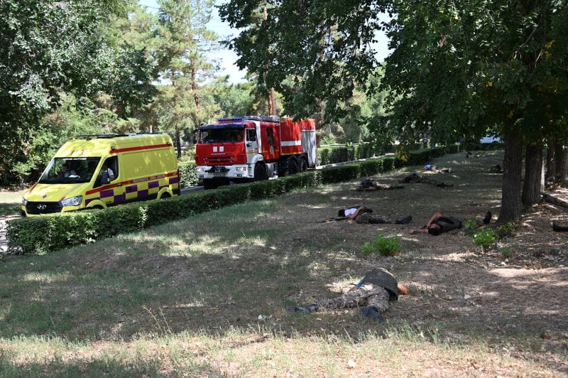 На помощь бойцам территориальной обороны, прибыли два транспорта с их товарищами по оружию. По выражению лиц зрителей, располагавшихся на безопасном расстоянии от происходящего, их ощущения обострились от звучания взрывных устройств. Был обстрелян и автомобиль скорой помощи.