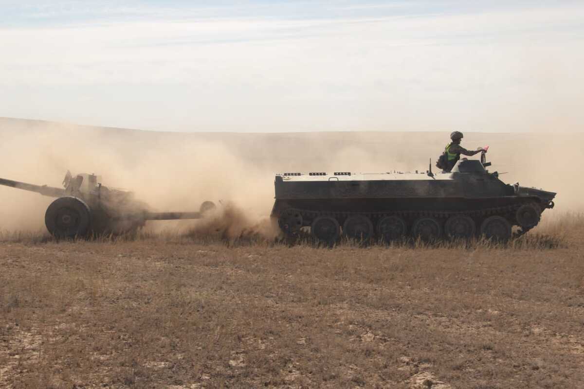 На учебном полигоне «Көктал» артиллеристы штурмовой бригады выполнили боевые стрельбы из 152-мм пушки «Д-20» по неподвижным целям. Уточняется, что стрельба велась прямым и полунавесным прицельным методом в рамках плана боевой подготовки.