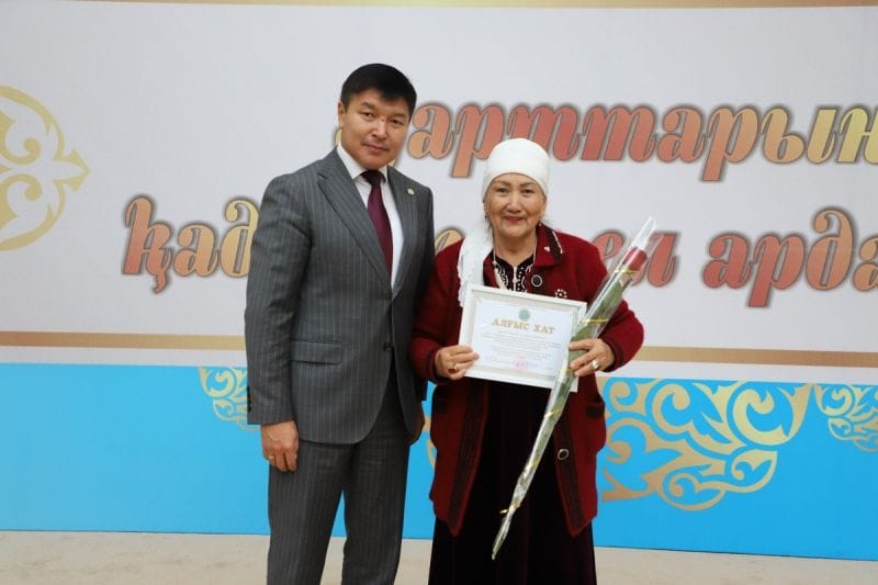 В ходе церемонии Ернат Базил, оказывая дань уважения, вручил благодарственные письма ветеранам, принимающим активное участие в общественной жизни города и вносящим весомый вклад в воспитание молодежи. В их числе Мырзахмет Ережепов (здравоохранение), Галия Махаманова (спорт), Шарипжамал Турдыгулова (образование), активисты городского Совета ветеранов — Рауза Намазбаева, Отенайского сельского округа – Гульшекер Иешева и другие.