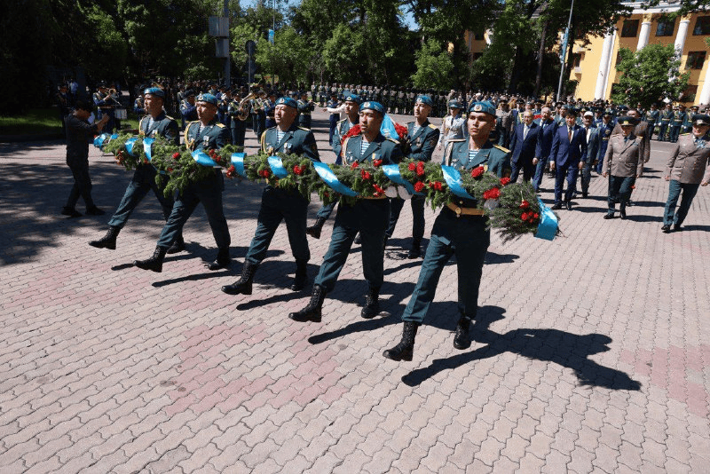 Троекратный залп из боевого оружия, минута молчания, а затем дружно исполненный участниками мероприятия под сопровождение военного эстрадно-духового оркестра величественный Гимн Казахстана прибавили торжества моменту.