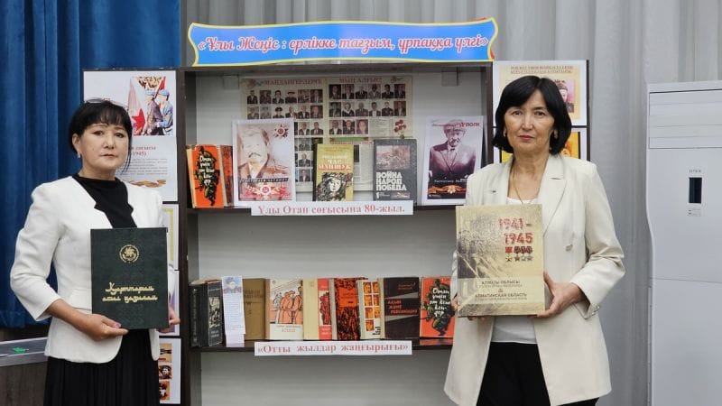Затем выступили представители семей ветеранов войны. Слова благодарности выразил председатель Совета ветеранов города Талдыкоргана Акшабай Керимбеков. А студенты колледжа подготовили доклады о героизме казахстанских солдат и о вкладе нашей страны в достижение Победы.