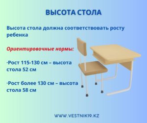 - при росте 115–130 см оптимальная высота стола — около 52 см;