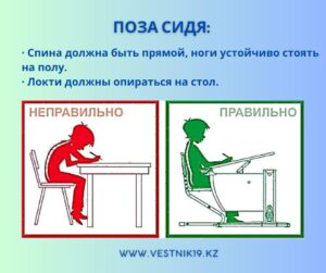 Неправильная поза за столом — причина болей в спине и плечах даже у младших школьников. Ориентир простой: спина прямая, ступни полностью на полу, локти лежат на столе. Если ноги «висят», поставьте подставку; если ребёнок тянется вперёд, отрегулируйте высоту стула или наклон столешницы.