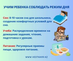 Самоорганизация школьника начинается со сна. 8–10 часов — норма, которая влияет и на успеваемость, и на иммунитет. Домашние задания выполняйте по плану: 20–30 минут работы — 5 минут перерыв. Пусть в расписании будет место не только для уроков, но и для чтения, подготовки к следующему дню и спокойного вечернего ритуала перед сном.