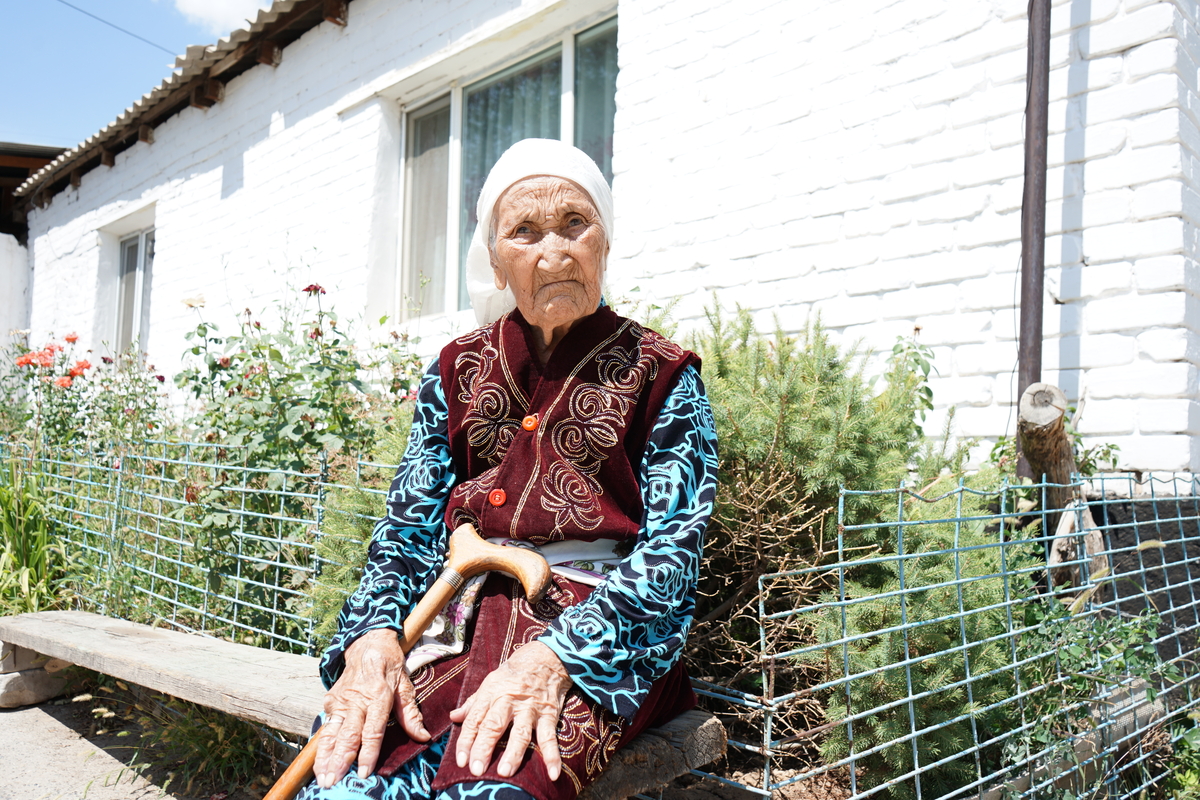 Ее руки теплые и крепкие, ее взгляд пронзительный с легкой улыбкой. Маленькая и хрупкая 107-летняя Айтай Сейдахмет стоит во дворе своего нового дома в Сарыозеке – она вышла встречать дорогих гостей, рассказывает корреспондент Vestnik19.kz