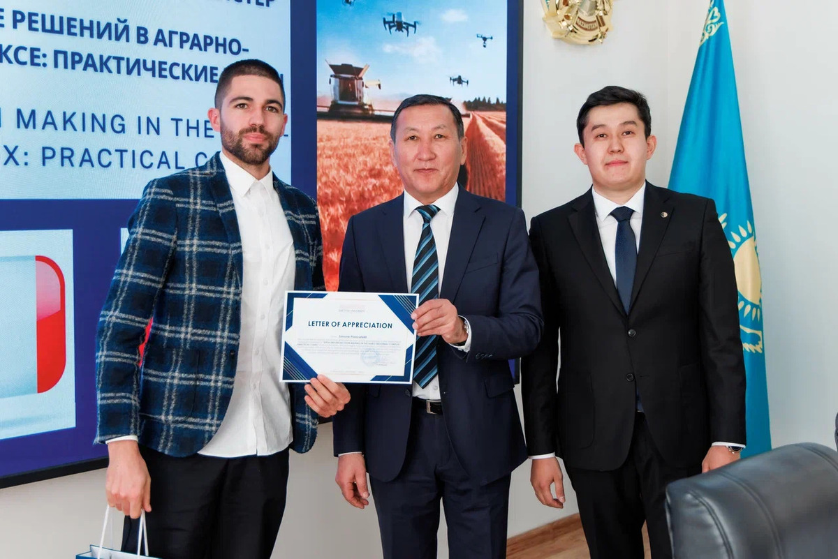 С объемным докладом о борьбе с болезнями сельхозкультур перед участниками выступил Симоне Пьянкателли – доктор в области пищевых технологий и окружающей среды. Основное место в его презентации занял вопрос безвредности применяемых средств как для растений и животных, так и, прежде всего, для человека. Следом за ним слово взял доктор философии из Китая Рашид Ауес, представитель Международного центра по улучшению кукурузы и пшеницы, и Исследовательского центра Шаньдунского сельхозуниверситета. Темой его доклада стала геномика пшеницы для определения питательных свойств и пользы для здоровья. Особое оживление вызвало выступление магистра физико-математического факультета Ахмета Кыдырали, который презентовал комплекс из трех дронов разного размера. Это химический, автономно-модифицированный и мини-скоростной дроны, которые могут обработать химикатами от 20 до 40 га полей в час. Плюсом комплекса является экономичность. Проект заинтересовал не только местных крестьян, но и иностранных гостей, которые предложили совместные исследования. А руководители фермерских хозяйств заинтересовались как дальностью полетов дронов, так и возможностью дозаправки аккумуляторных батарей на специально оборудованных площадках.