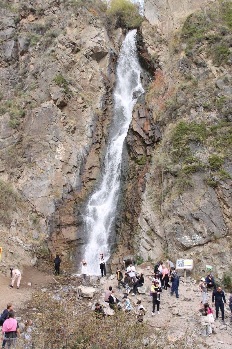 Особую известность Тургеньскому ущелью принесли каскады водопадов, имена которым дали сами горы и фантазия первых исследователей: грозный Кайракский, мистический Медвежий, суровый Скалистый и другие. Их холодные потоки создают музыку, слышимую издалека, и приводят путника в состояние глубокого умиротворения и гармонии. Именно Медвежий водопад – одно из самых впечатляющих мест Тургеньского ущелья, был нашей второй локацией в программе тура. Это зрелище завораживает своей мощью и грацией, заставляя задуматься о силе природы и ее способности создавать чудеса. Вода падает с высоты около 30 метров, образуя облако брызг. Стоя рядом с водопадом, чувствуешь непередаваемое: энергия бурлящей стихии буквально охватывает тебя целиком, даря ощущение свободы и восхищение первозданностью природы.