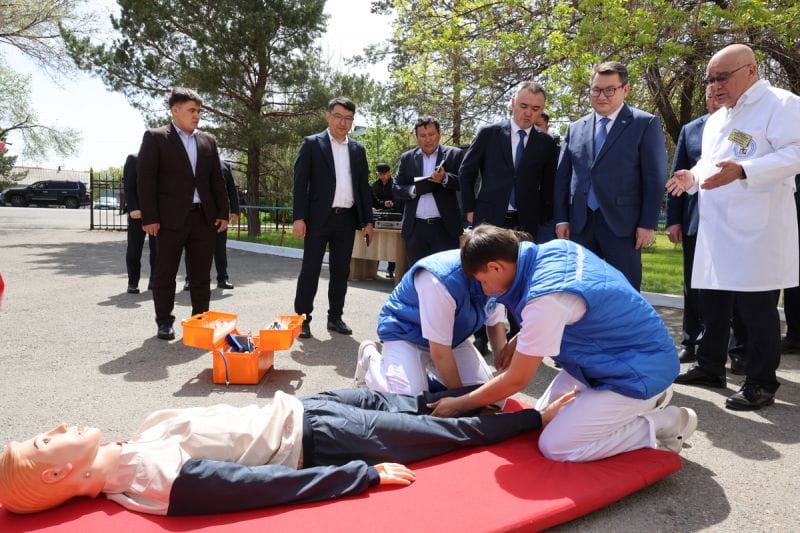 Далее Малик Отарбаев в рамках Года рабочих профессий ознакомился с выставками Высшего политехнического, аграрно-технического, индустриального колледжей, устроенных на территории Талдыкорганского высшего политехнического колледжа. Студенты Высшего медицинского колледжа продемонстрировали на манекене оказание первой помощи, а также провели показ реанимации сердца на специальном тренировочном оборудовании.