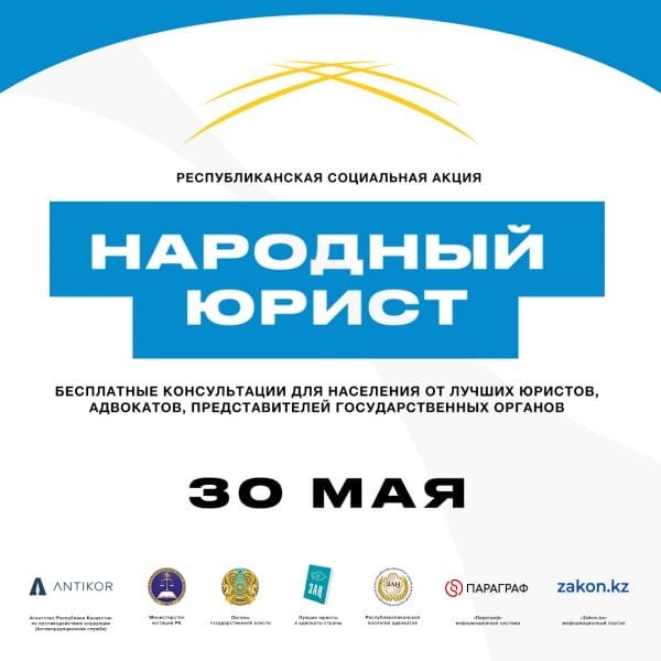 30 мая в 16:00 во всех крупных городах Казахстана стартует общереспубликанская акция «Народный юрист», передает Vestnik19.kz