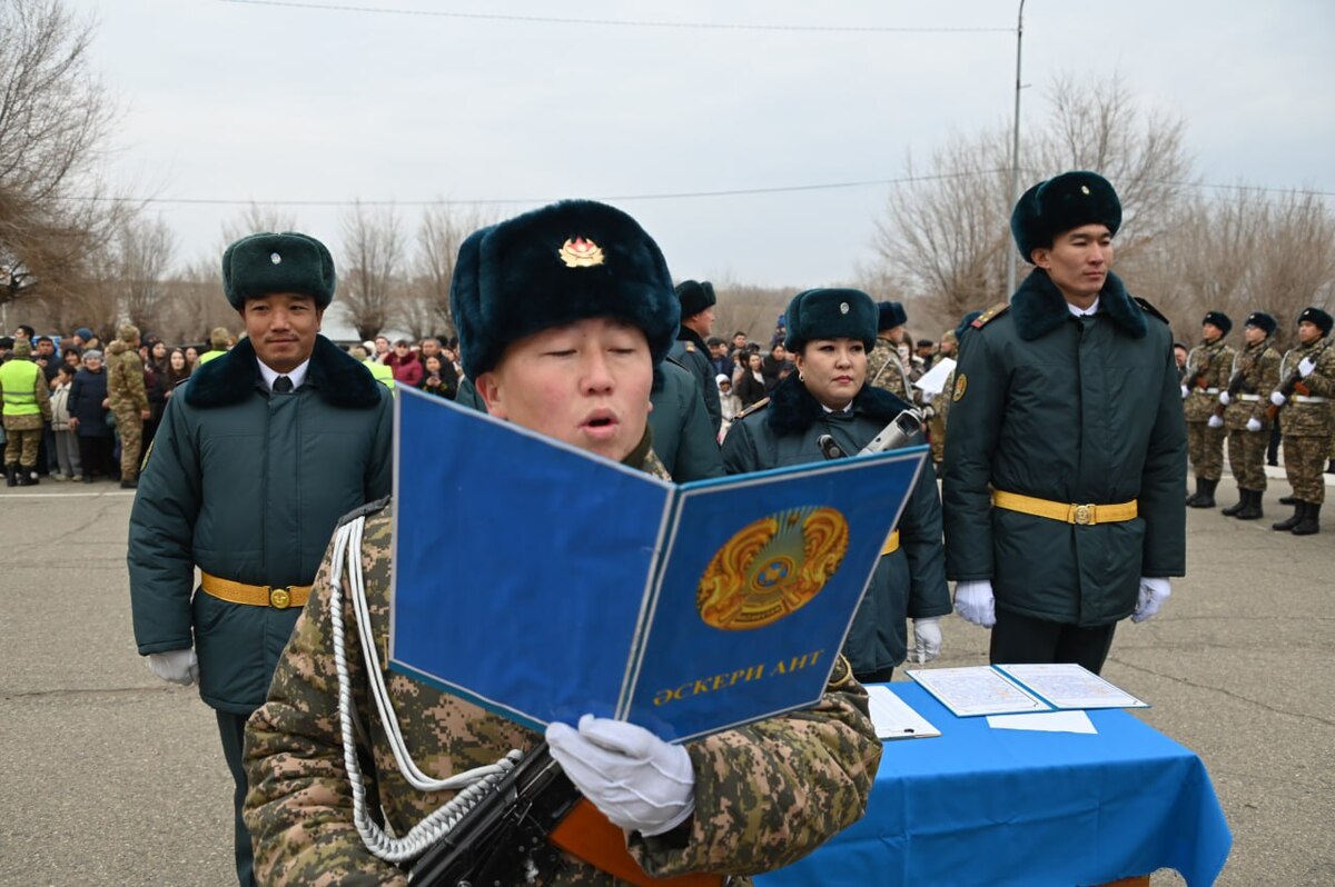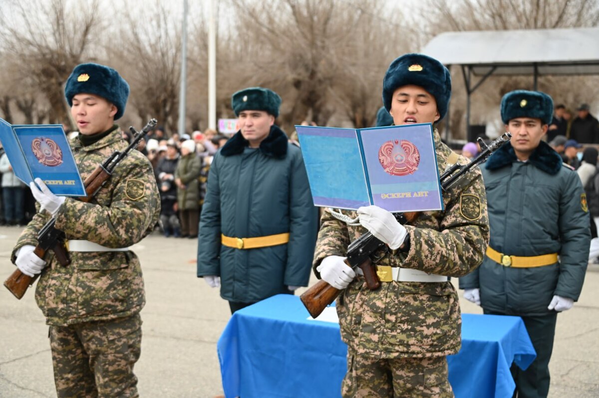 Юных бойцов поздравили со знаменательным событием и пожелали достойно нести службу по защите Родины. В свою очередь, начальник гарнизона полковник Серик Рамазанов напомнил молодым солдатам о требованиях Конституции, значении военной присяги и верности Отечеству.