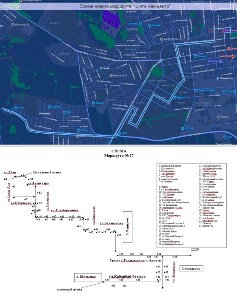 Для улучшения транспортной доступности и обеспечения комфортного передвижения жителей Талдыкоргана начал свою работу новый автобусный маршрут №27, сообщает Vestnik19.kz со ссылкой на пресс-службу акимата областного центра.