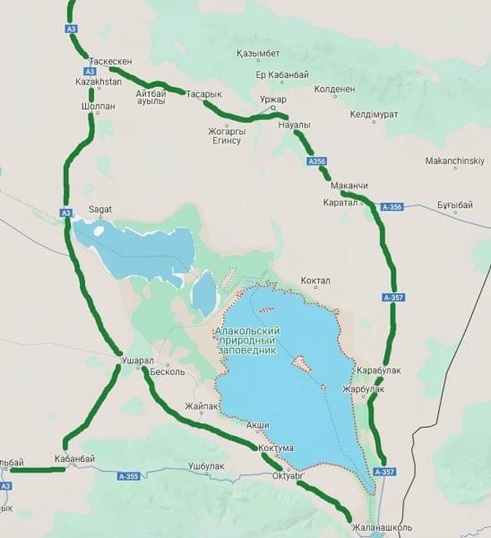 Напомним, что проезд к озеру Алаколь осуществляется по автомобильной дороге республиканского значения «Талдыкорган — Усть-Каменогорск», протяженность которой составляет 768 км. На сегодняшний день асфальт уложен на всем протяжении автодороги.
