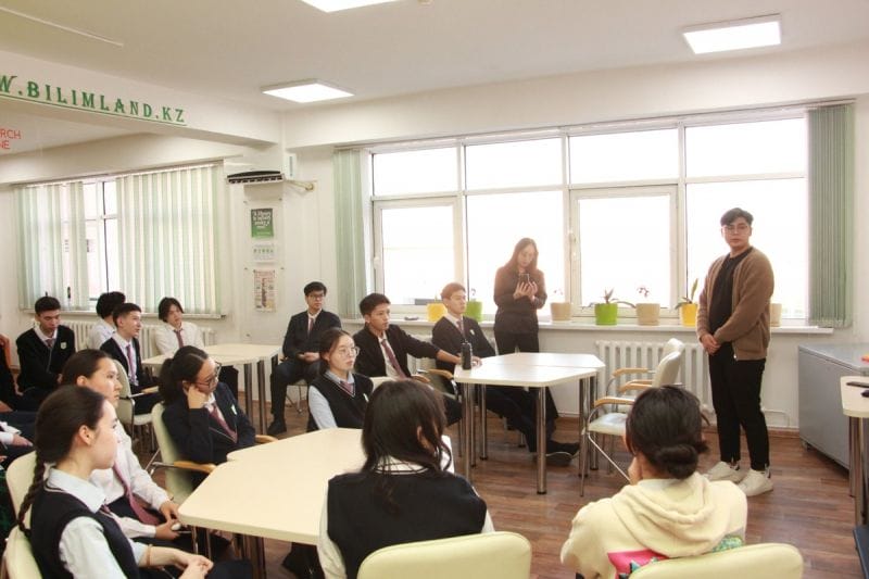 На встрече с учениками 12 классов Куаныш Жумагазиев рассказал о перспективах в сфере IT, о выборе профессии, о том, как получить свою первую работу, находясь в процессе обучения и о многом другом.