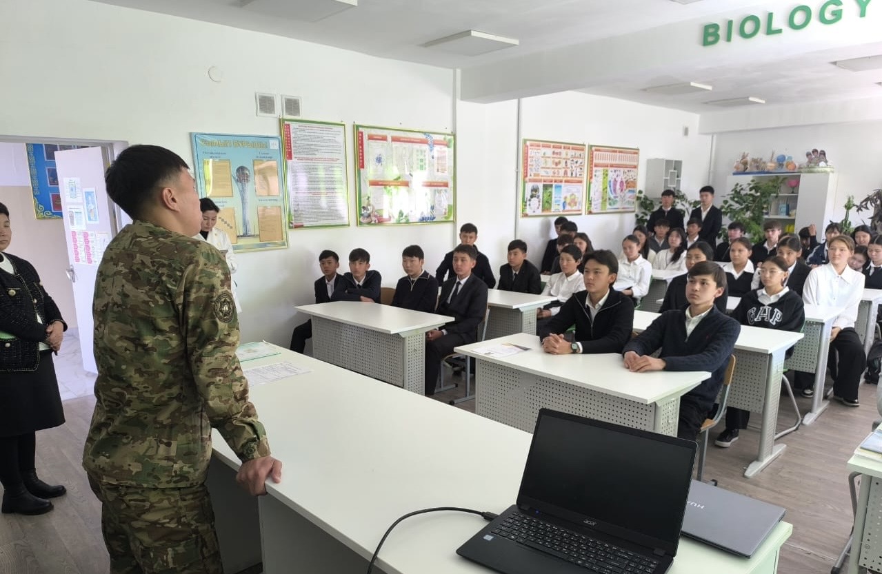 В средней школе имени Крылова села Баскуншы Панфиловского района состоялась встреча учащихся старших классов с представителями Пограничной службы Комитета национальной безопасности Республики Казахстан.