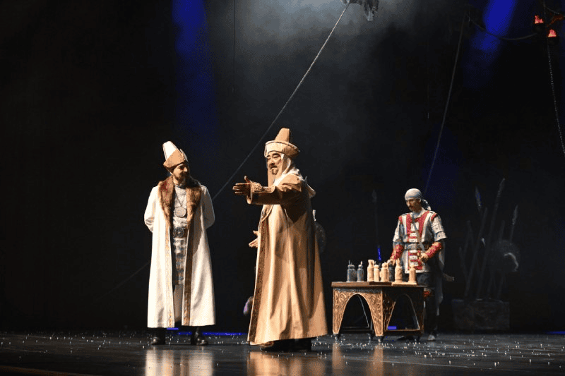— Спектакль, впервые поставленный в 2021 году известным казахстанским режиссером Куандыком Касымовым, несет в себе глубокий патриотический смысл. Он не только рассказывает о героическом прошлом казахского народа, но и погружает зрителей в атмосферу того времени, позволяя им воочию увидеть быт, стиль одежды, речь и язык людей того периода. Особое внимание уделено дипломатическим способностям казахских лидеров, их умению вести переговоры и отстаивать интересы своего народа. Важной темой спектакля является объединение трех жузов под руководством Абылай хана, — отметил он.
