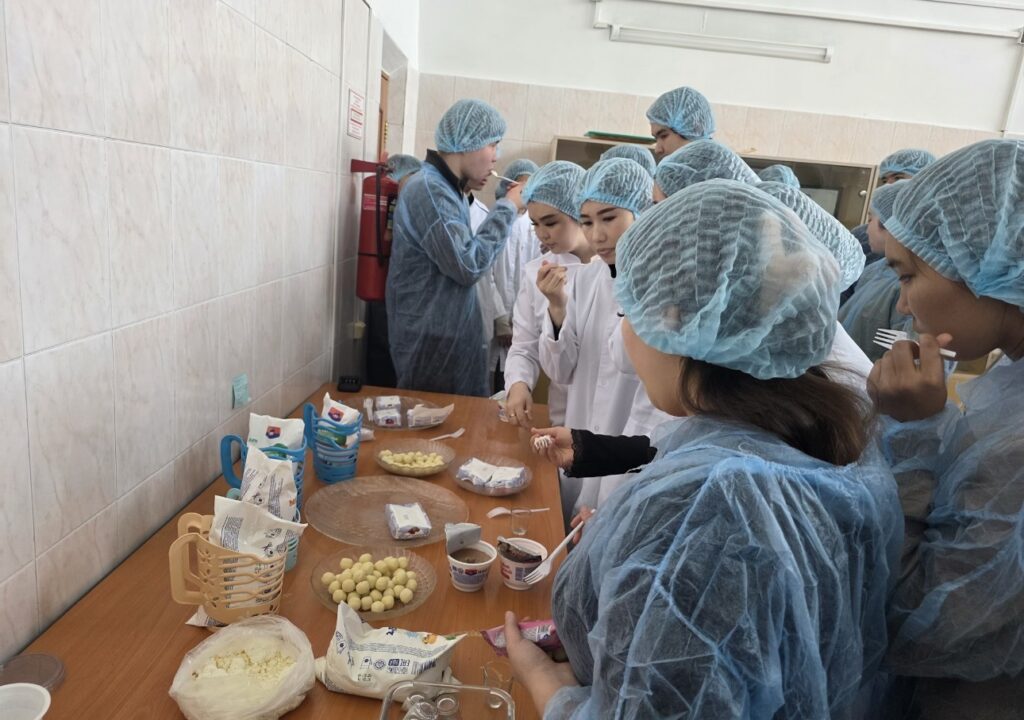 После экскурсии студенты отправились на дегустацию. В зале им представили сырки, йогурты, творожные десерты и курт. Ребята сравнивали вкус и текстуру различных сортов, обсуждали между собой отличия и особенности каждого продукта, отмечая технологические нюансы. Все образцы соответствовали стандартам свежести и качества.
