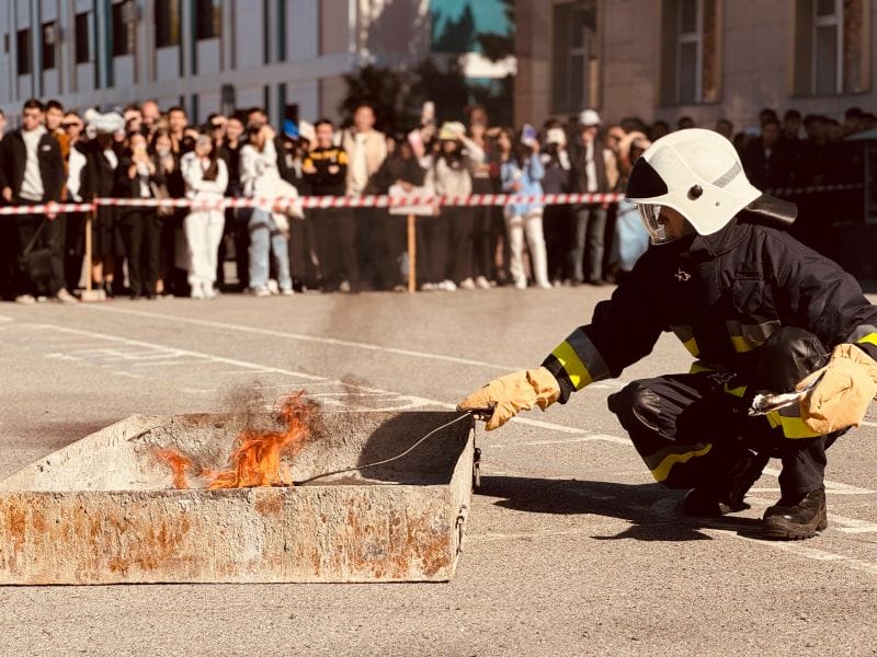В честь Дня спасателя в ЖУ прошли практические учения, где студенты и кадеты обучались основам безопасности и спасательных операций.