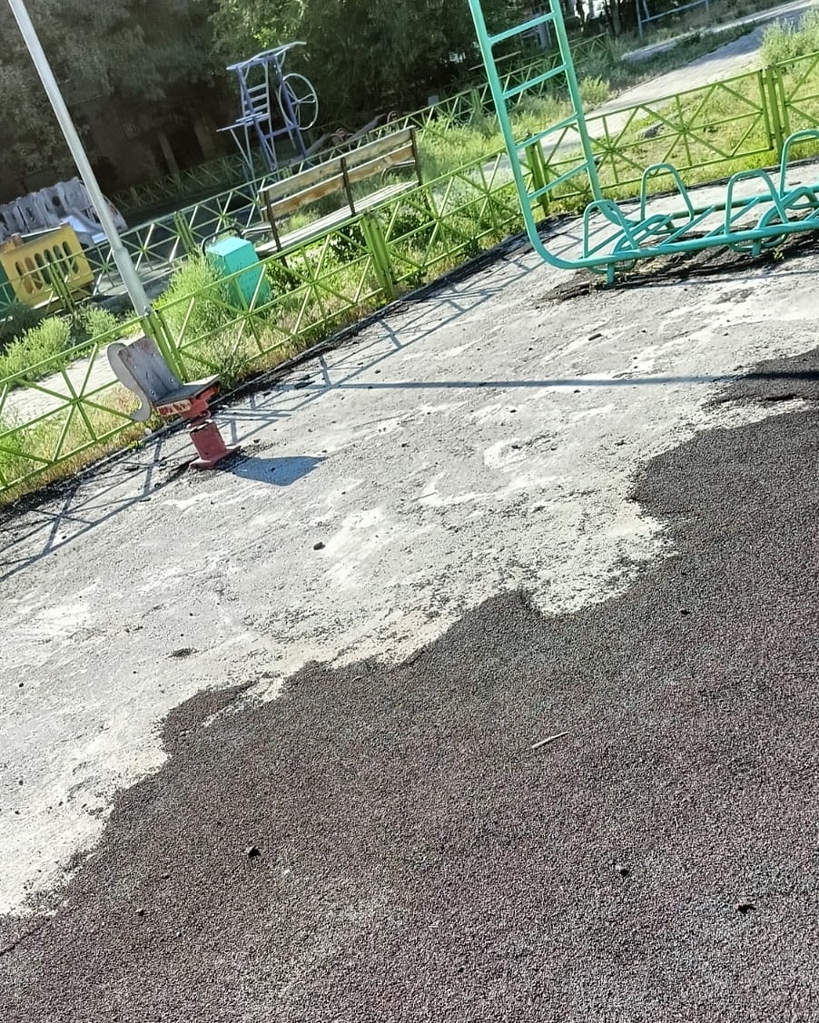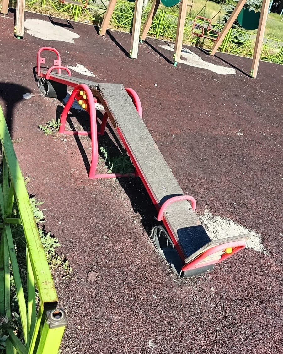 Обращение к городской администрации, подкрепленное соответствующими фотографиями, размещено в соцсетях. На кадрах сломанные детские качели, игровые сооружения с обвалившейся местами краской, разорванное на площадке искусственное покрытие и т.д.