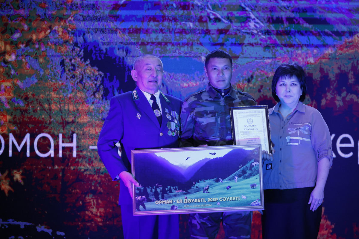Значимым моментом встречи стало вручение государственных нагрудных знаков: «За вклад в сохранение биоразнообразия» II степени — лесничему лесничества Аксу-Арасан Ерлану Кожабекову, «За безупречную службу в охране лесов» II степени — мастеру леса Айжан Сыдыковой, «За вклад в сохранение биоразнообразия» III степени — мастеру леса Абаю Усенову.