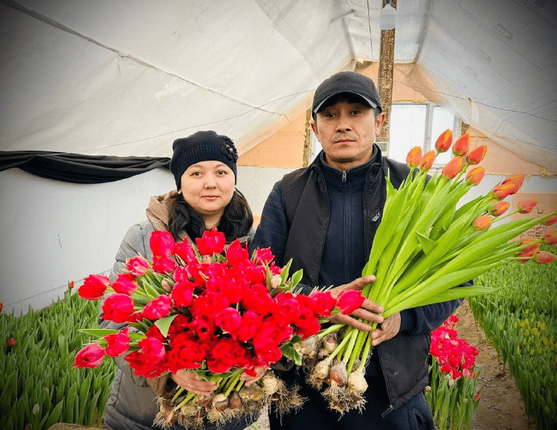 Бауыржан самостоятельно построил теплицу площадью 110 квадратных метров. Он закупил голландские луковицы и самостоятельно изучил все тонкости ухода за цветами, включая температурный режим, влажность и другие нюансы.
