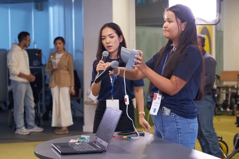— Наши стартап проекты — это не просто что-то придуманное только для конкурса, они способны помочь нуждающимся, и в наших планах развивать их дальше, сделать производственную линию, — поделились о своих целях юные разработчики Анар Нурмухан и Диана Хасимова, ученицы 11-12 классов NIS Талдыкорган.