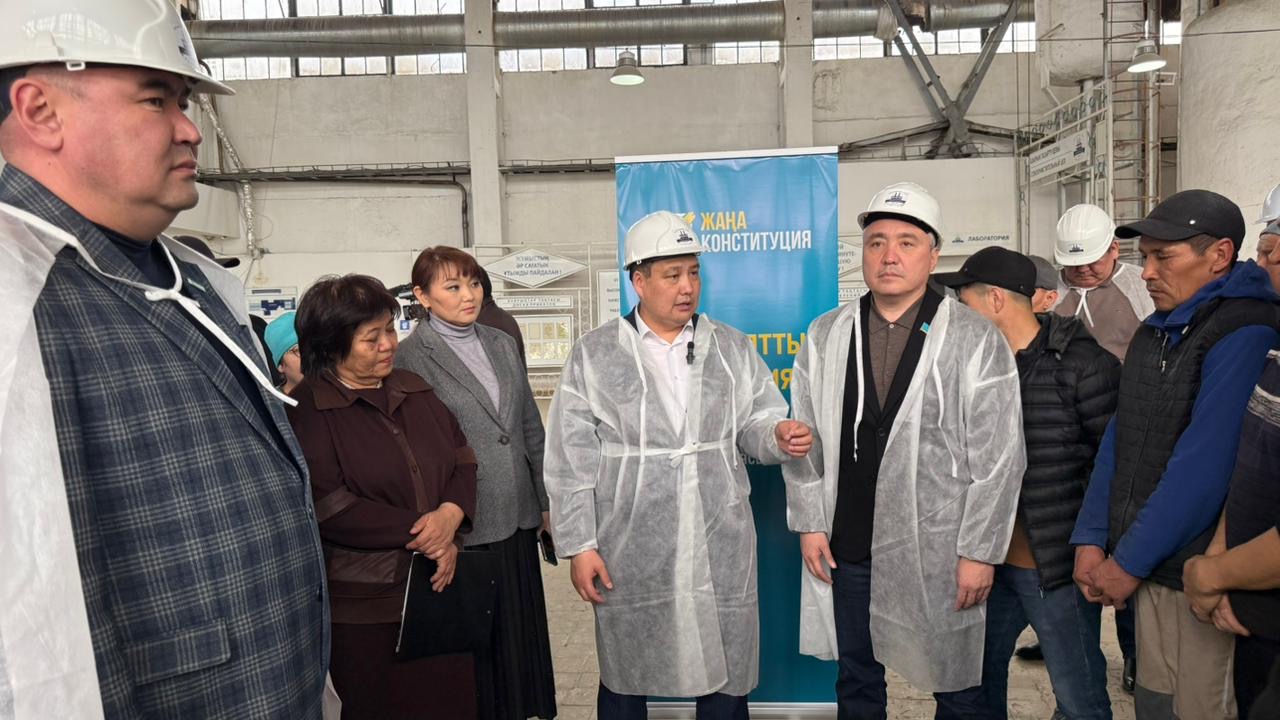 Встреча прошла на площадке ТОО «Ақсу Қант зауыты» — одного из старейших и системообразующих предприятий региона, где тема Основного закона была рассмотрена через призму экономики, занятости и доверия между государством и обществом.