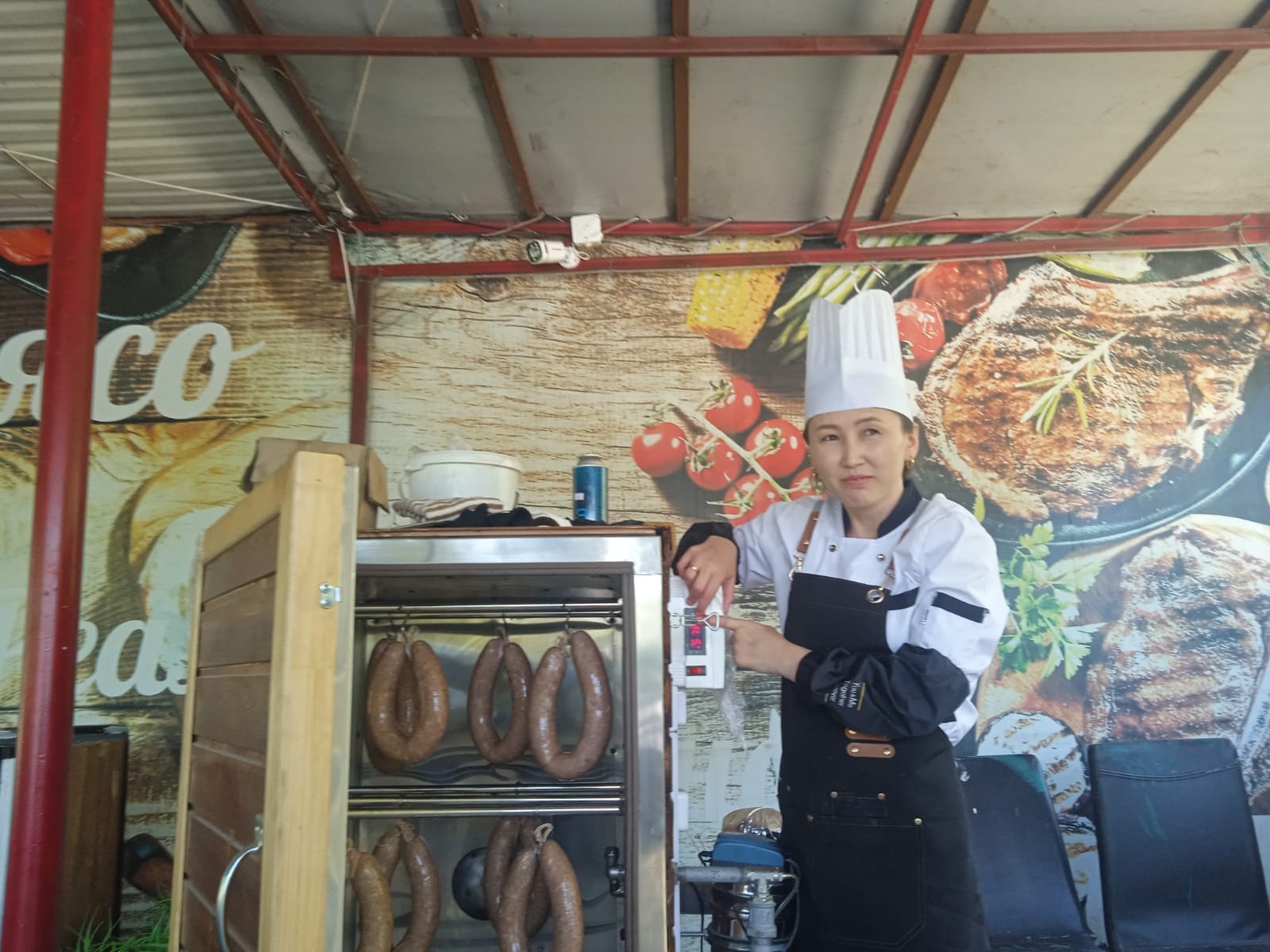 Кстати, чтобы минимизировать риски оседания вредных веществ на колбасные и мясные продукты во время копчения, Айгуль приобрела коптильню со специальным фильтром.