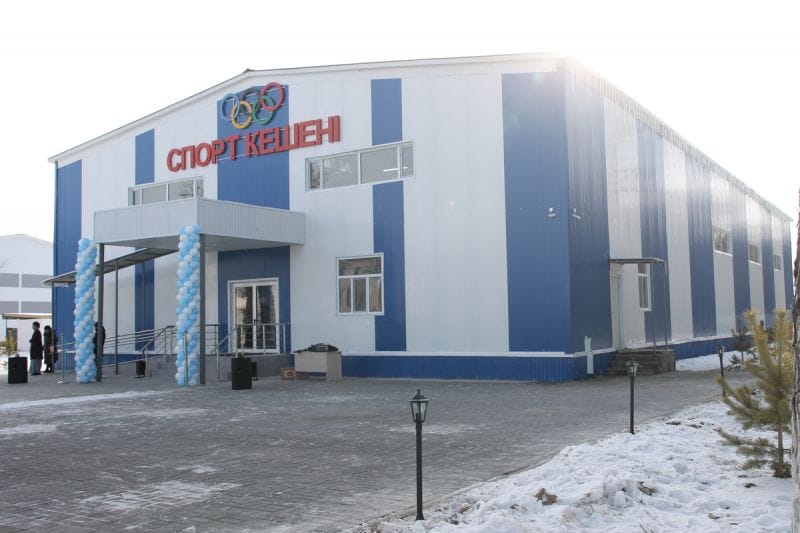 Торжество продолжилось возле здания нового спорткомплекса, где в этот день была также перерезана голубая лента у входа. На церемонии открытия прозвучали поздравления от руководства района и местных аксакалов – почетных жителей. Физкультурно-оздоровительный комплекс построен ТОО «Эснаф». Для этих целей было выделено более 99 млн тенге. Современное здание включает в себя игровой зал для волейбола и баскетбола, а на втором этаже теперь работает секция вольной борьбы. Кроме того, открыты секции шахмат и тогызкумалак.