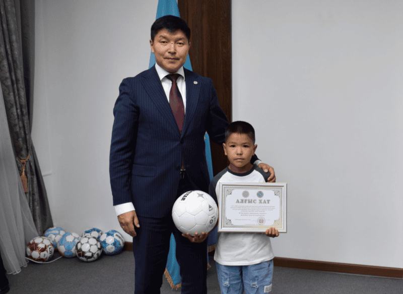 Юного спортсмена Мансура Жумабека также отметил аким Ернат Базил. Мансур в 5 лет является игроком футбольного клуба «Жетісу». В столь юном возрасте малыш демонстрирует профессиональные данные, чему удивлены не только зрители, но и сами тренеры.