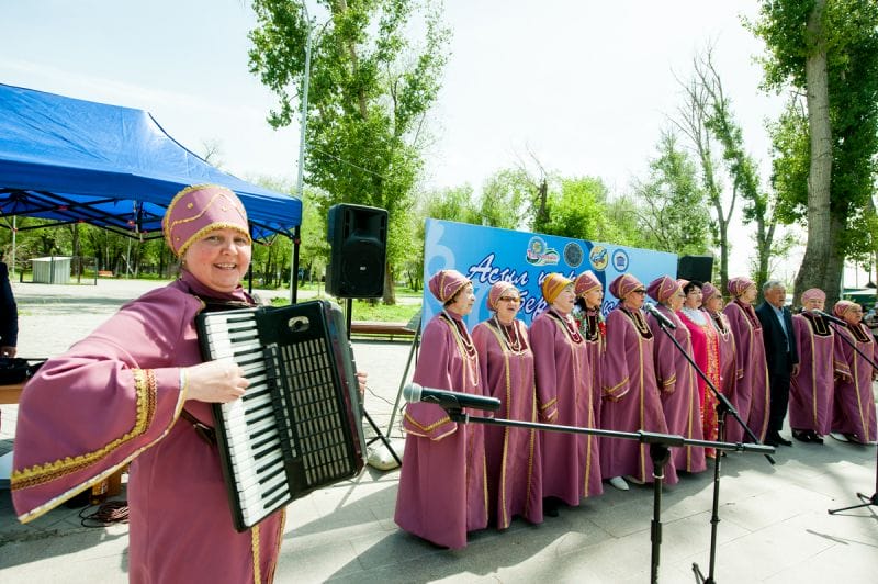Торжественное открытие продолжил хор ветеранов, а затем выступил и корейский народный ансамбль «Ачим-Ноуль», далее солистка хора ветеранов Шара Абильдаева исполнила несколько лиричных песен как «Жібек сезім», «Әнім сен едің». Активное участие в песенном мероприятии принял и центр активного долголетия.