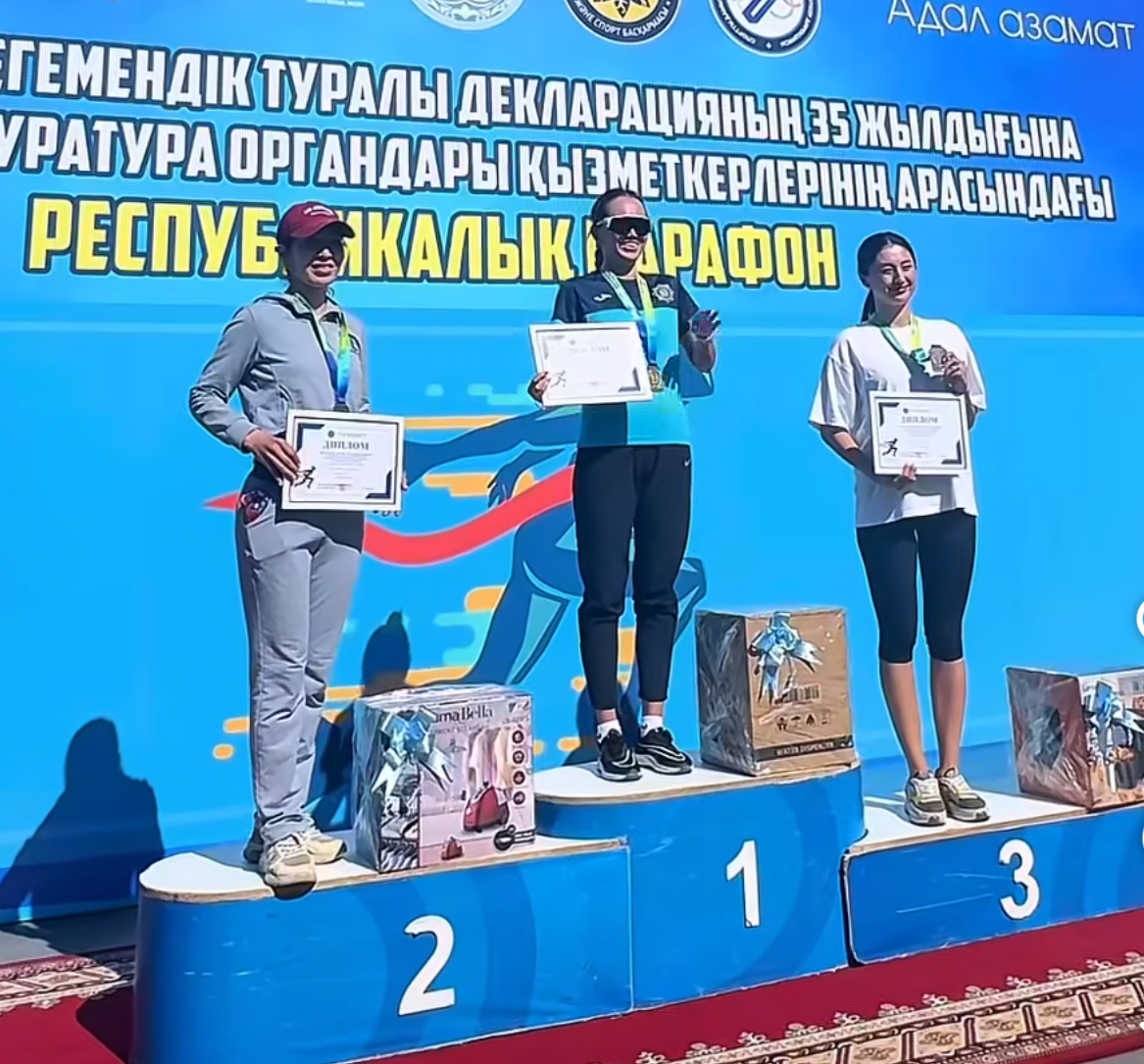 В забеге среди женщин первое место заняла представитель Главной военной прокуратуры Молдир Сейтханова. Второе место — у сотрудницы прокуратуры Акмолинской области Актолкын Темиркуловой, третье — у Молдир Канисовой из прокуратуры города Алматы.