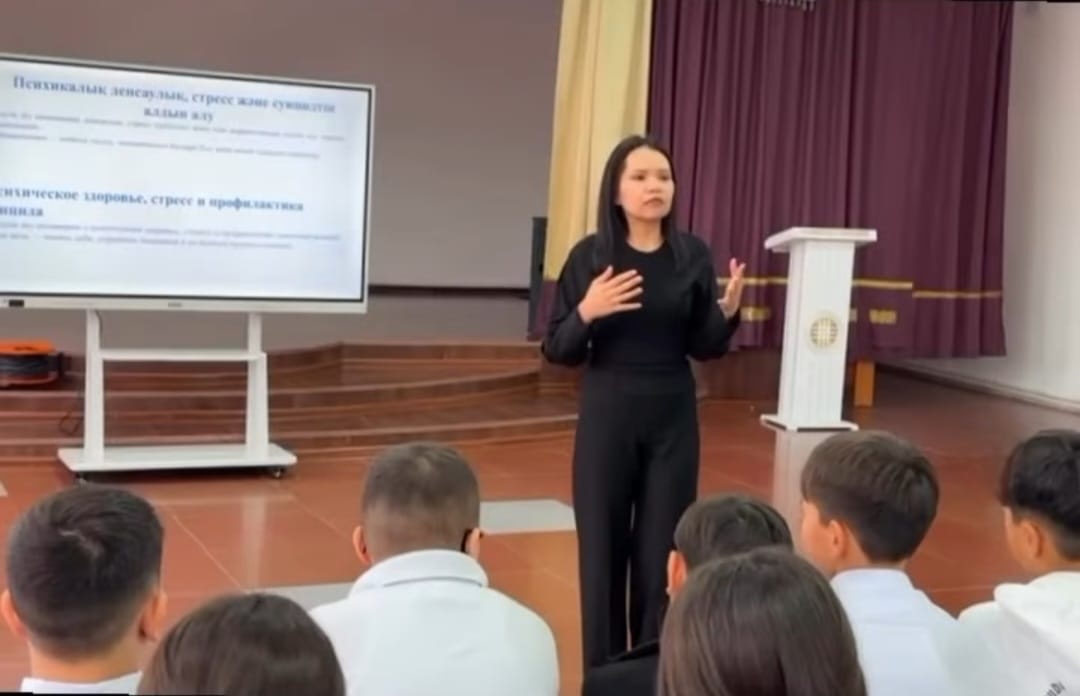 Встречу провела психолог медучреждения Меруерт Турдашова. Она подробно остановилась на том, как распознавать первые признаки эмоционального перенапряжения: резкие перепады настроения, замкнутость, проблемы со сном, снижение учебной мотивации и интереса к привычным занятиям.