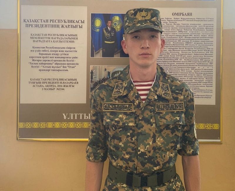 20-летний ефрейтор является военнослужащим по контракту в инженерно-саперной группе роты боевого обеспечения 1 батальона оперативного назначения в/ч 5514 г. Талдыкоргана. В рядах Национальной гвардии Республики Казахстан он с мая 2022 года.