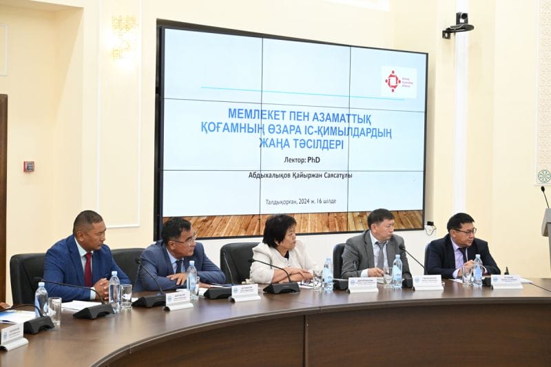 В нем приняли участие как представители неправительственных организаций, так и заместители акимов районов и городов, руководители отделов общественного развития на местах. Лектором выступил Кайыржан Абдыхалыков, PhD, профессор бизнес-школы КБТУ, президент Гражданского альянса г. Алматы.