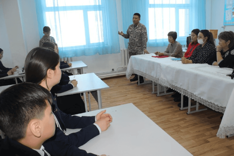 В ходе урока защитники Отечества рассказали о достижениях Вооруженных Сил Республики Казахстан и о казахстанских героях, проявивших патриотизм, честь и мужество. Кроме того, они проинформировали  о деятельности современной казахстанской армии.